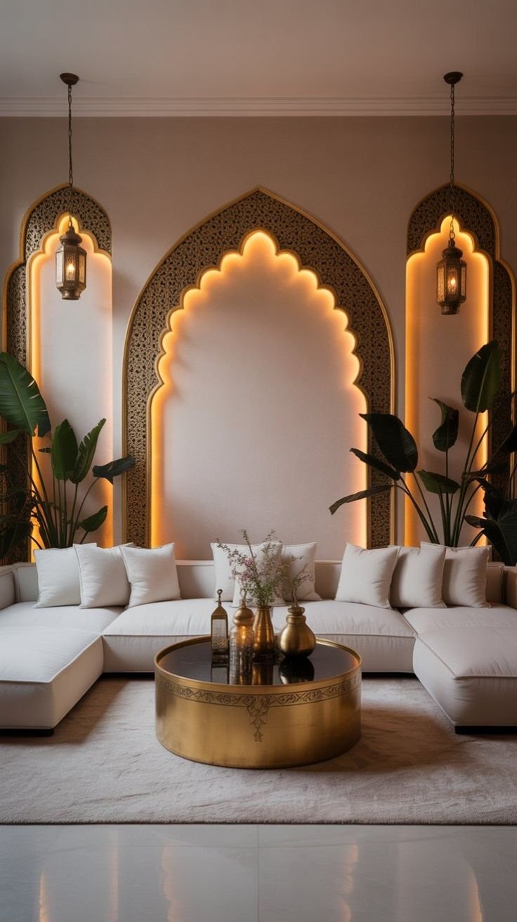 Kết hợp nền không gian tối giản + điểm nhấn Morocco