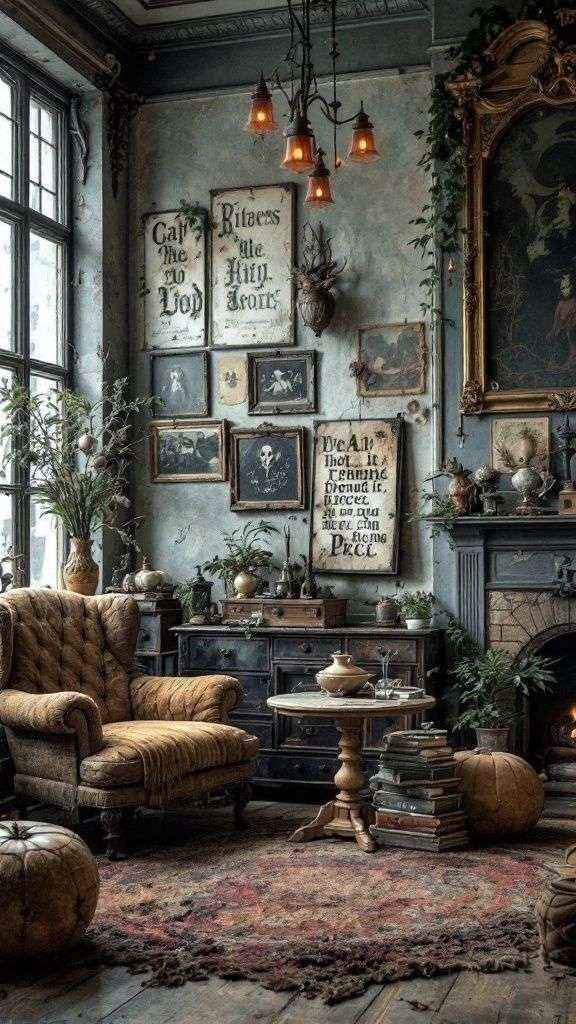 Rèm vải bay, tranh ảnh cổ điển, hoa khô, đèn ánh vàng dịu…