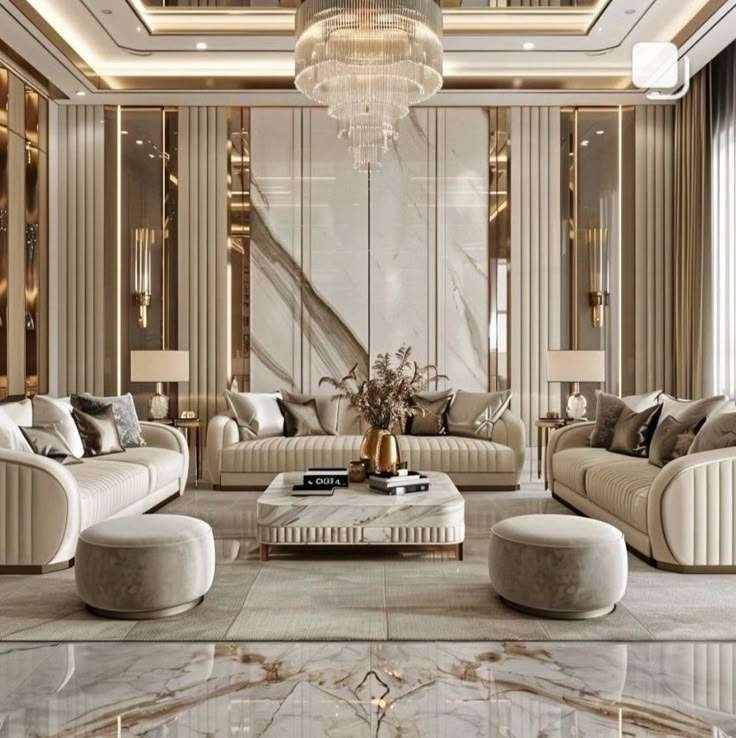 Bộ sofa bọc nhung hoặc da cao cấp, kiểu dáng mềm mại.