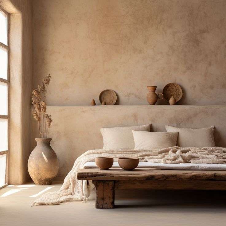 • Vật liệu mộc mạc: Gỗ thô, gốm, đá, vải linen, tre nứa – tất cả đều giữ nguyên vẻ đẹp tự nhiên, không quá trau chuốt.