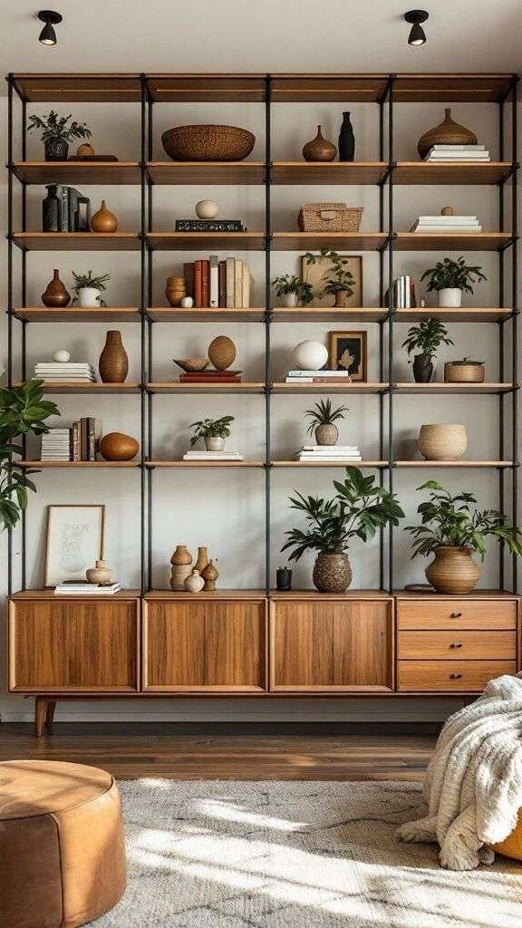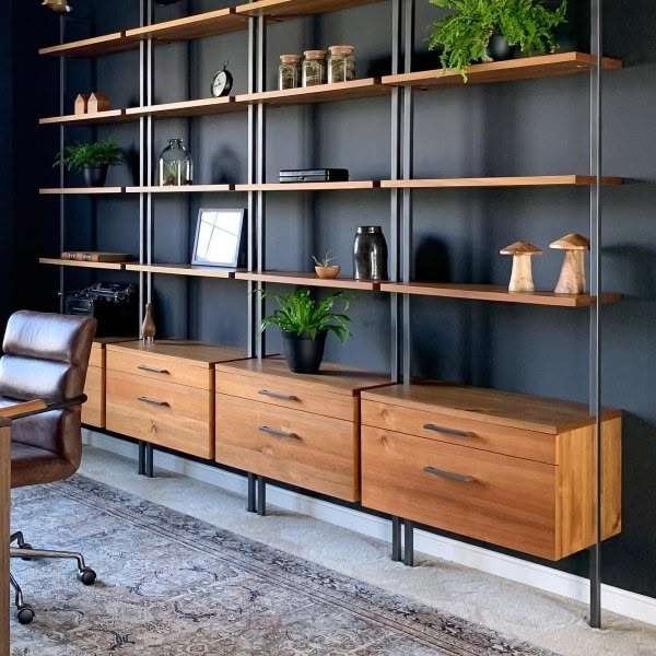 Kệ treo tường, kệ đứng, giá sách bằng sắt kết hợp gỗ là lựa chọn tối ưu cho không gian nhỏ, dễ dàng tháo lắp và tùy biến.