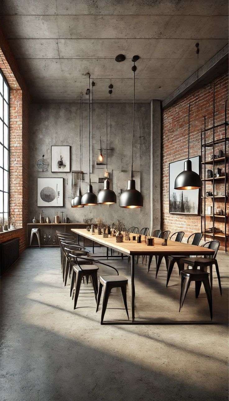 Industrial (công nghiệp): Sắt đen mờ, thô ráp kết hợp gạch thô, bê tông, gỗ sồi.