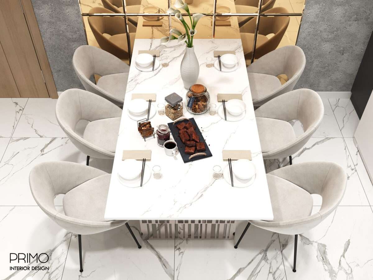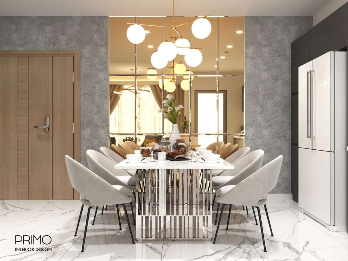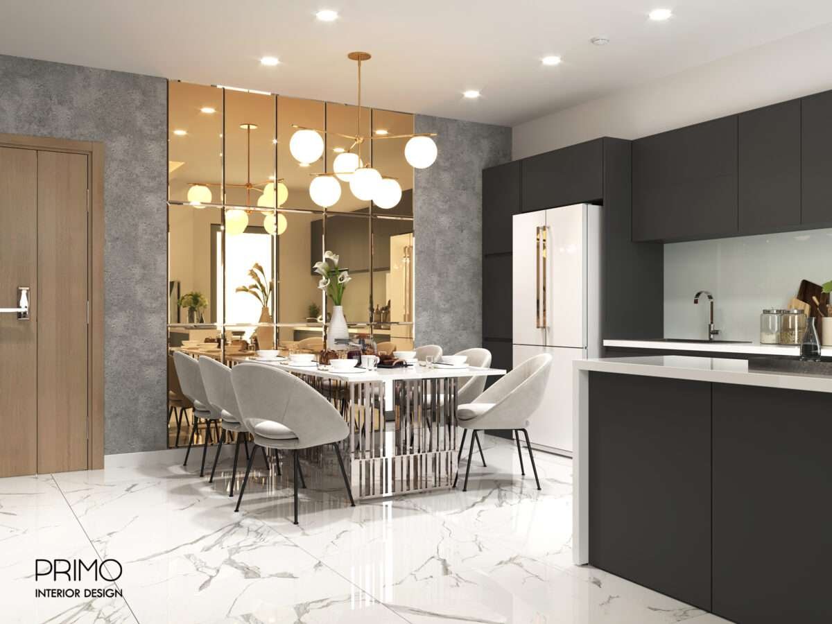 - Phòng Ăn: Chân bàn ăn, khung đèn chùm. Sự hiện diện của ánh kim không quá phô trương mà được tiết chế, tạo nên sự sang trọng tinh tế.