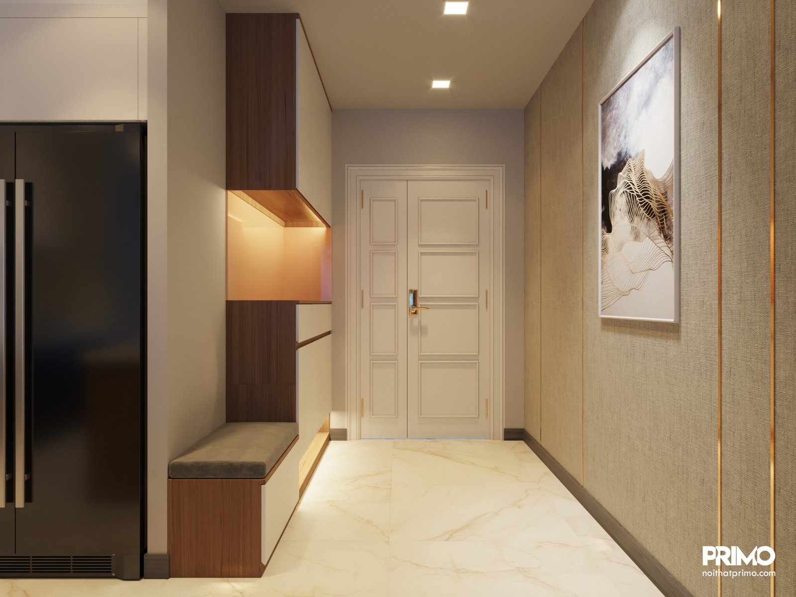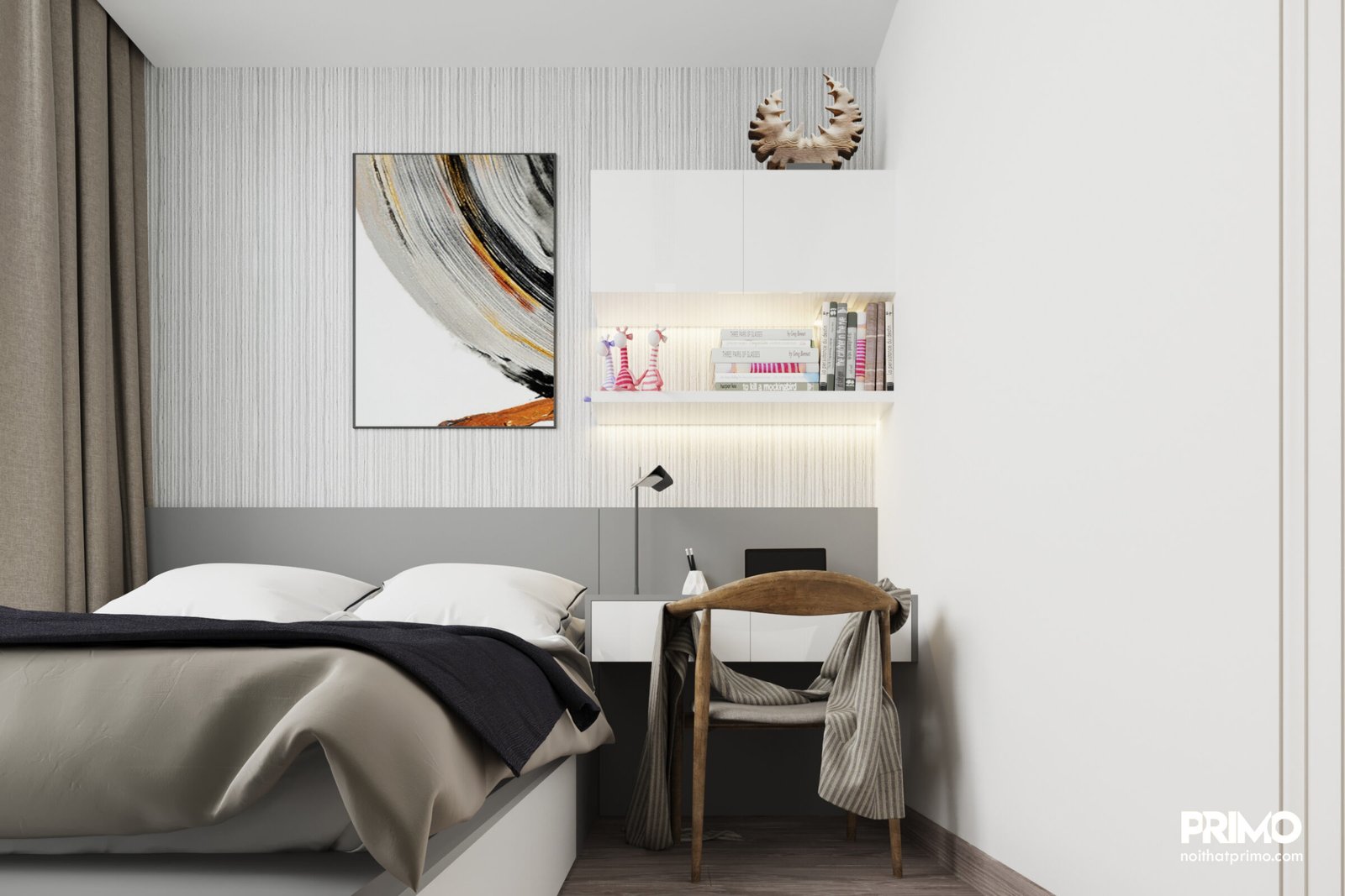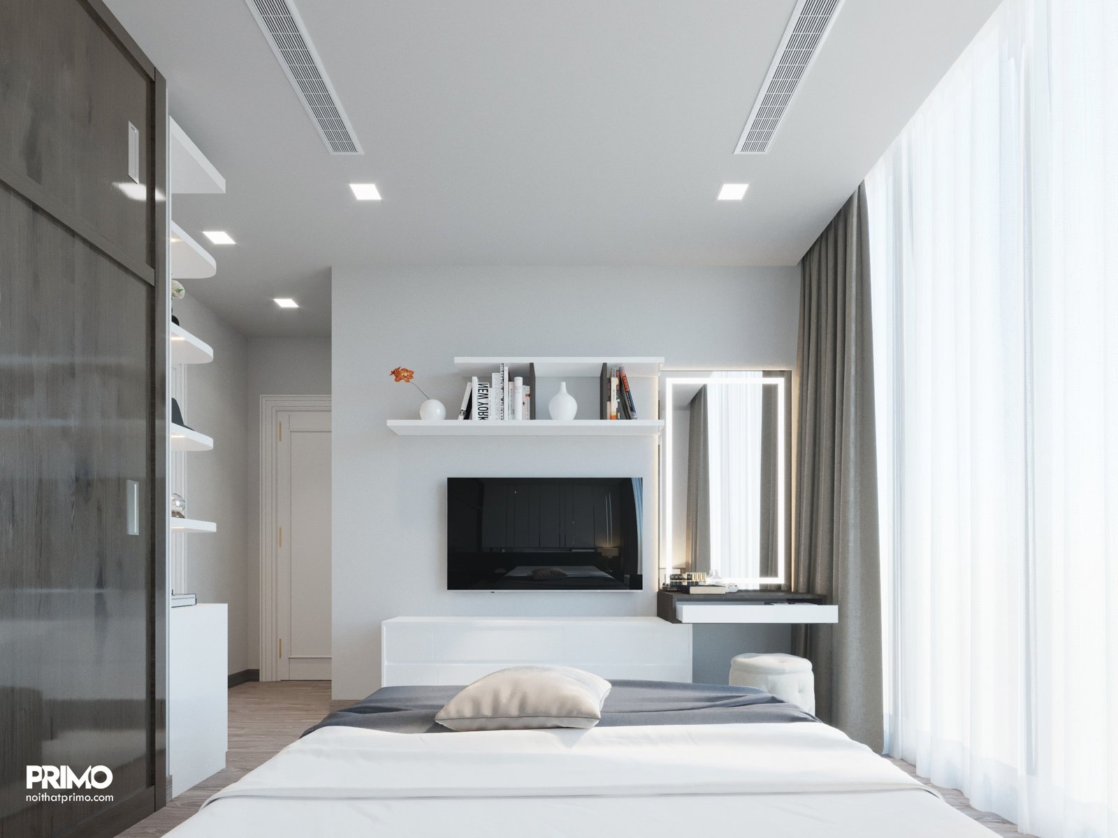 Thiết kế nội thất căn hộ cao cấp cho thuê tại Vinhomes Ba Son. Thiết kế theo nhu cầu cho thuê, vừa sang trọng, vừa đủ đơn giản để cho thuê.