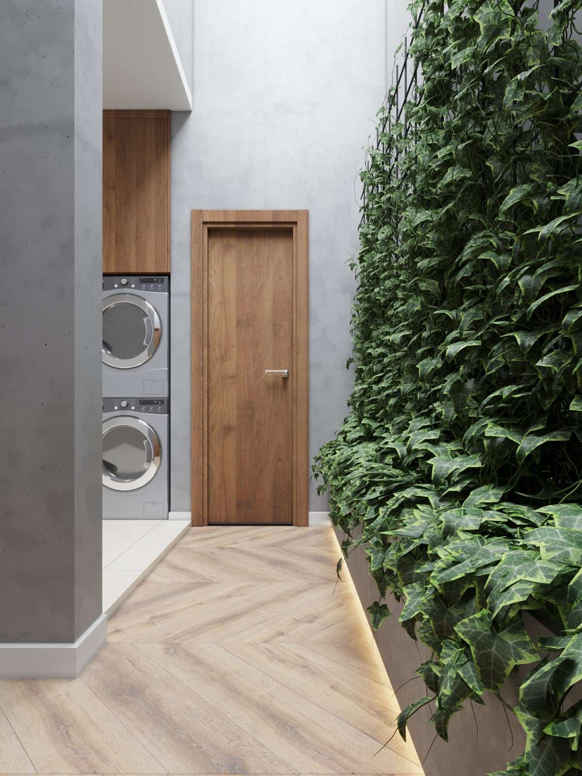 - Tiểu Cảnh Xanh: Khu vực sau nhà bếp được thiết kế thành tiểu cảnh xanh (tường dây leo), mang lại cảm giác tươi mát và mở rộng không gian thị giác.