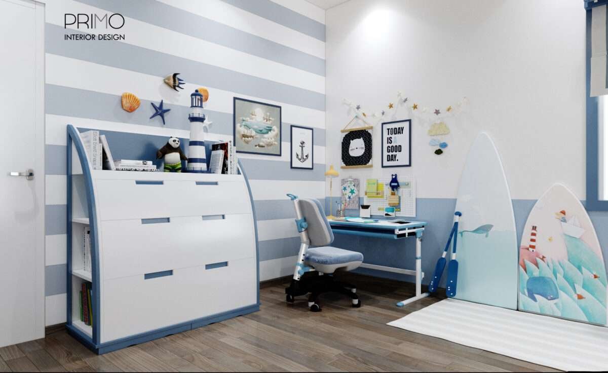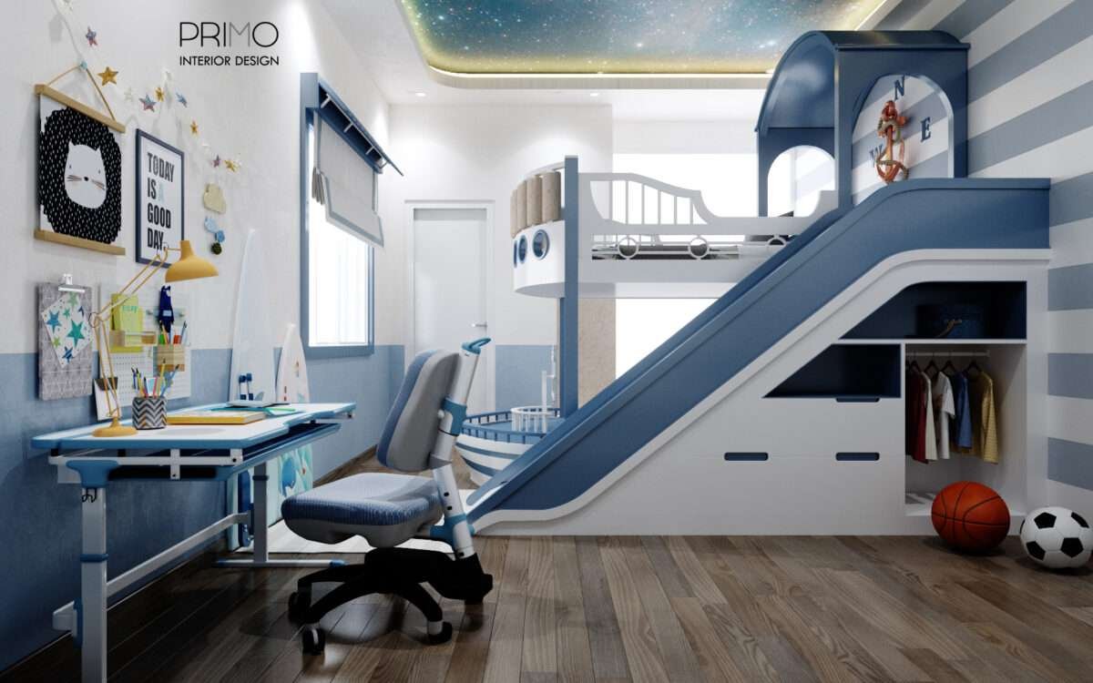 Phòng ngủ bé được thiết kế tính toán riêng cho độ tuổi và sở thích của bé, mang đến không gian phòng trẻ đầy cảm hứng.